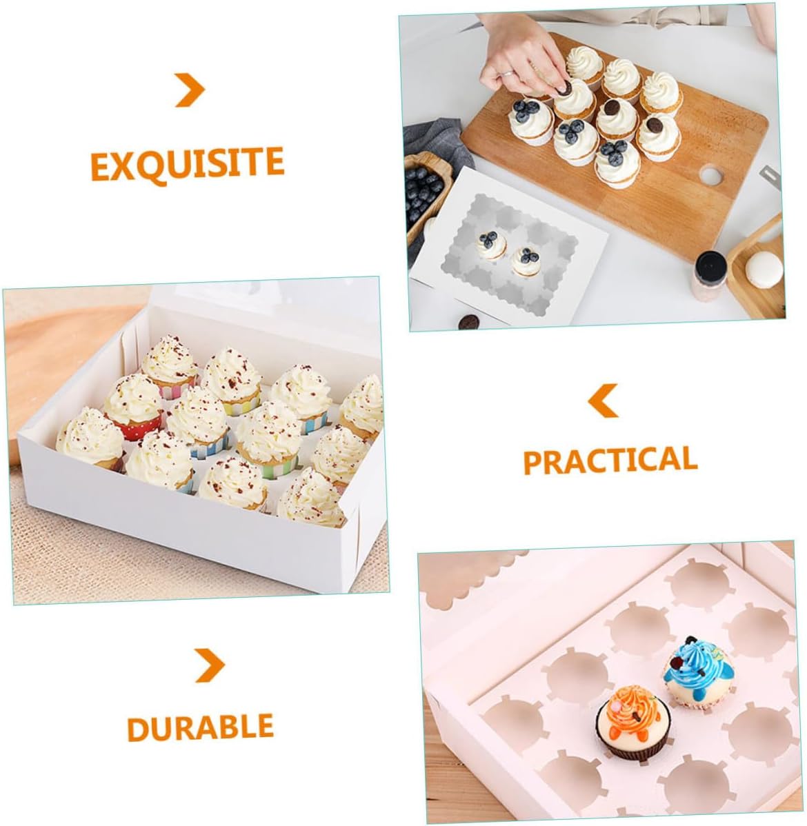 Package Include 10 x Baking Packing Boxes Characteristics -Color: White -Product Info:Cupcake packaging box -Material: Paper -Size: 32.50X25.00X9.00cm/12.77X9.82X3.54in -Simple and practical design, and easy to use and carry, it is suitable for baking party, cake shop, dessert shop, catering take-out muffin cup cake cases. -Transparent window design can show off your egg tarts inside without exposing to the air baking boxes. -There are enough quantity of packaging boxes that can meet your different needs cupcake boxes. -Multi-function design, it can be used as a packaging box for egg tart, cupcake, mousse, and other desserts cake boxes for cake portions. - and fashion box look design can make your egg tarts look more delicious and delicate cupcake carriers.Goods Informationpaper bakery carrier They can be used to pack egg tarts and muffin cake and such desserts, very delicate and practical.muffin cases This cake packaging box is made of premium and safe paper materials, you can use them with confidence.small cake boxes Suitable for birthday party, small banquet, hotel, cafe shop and more