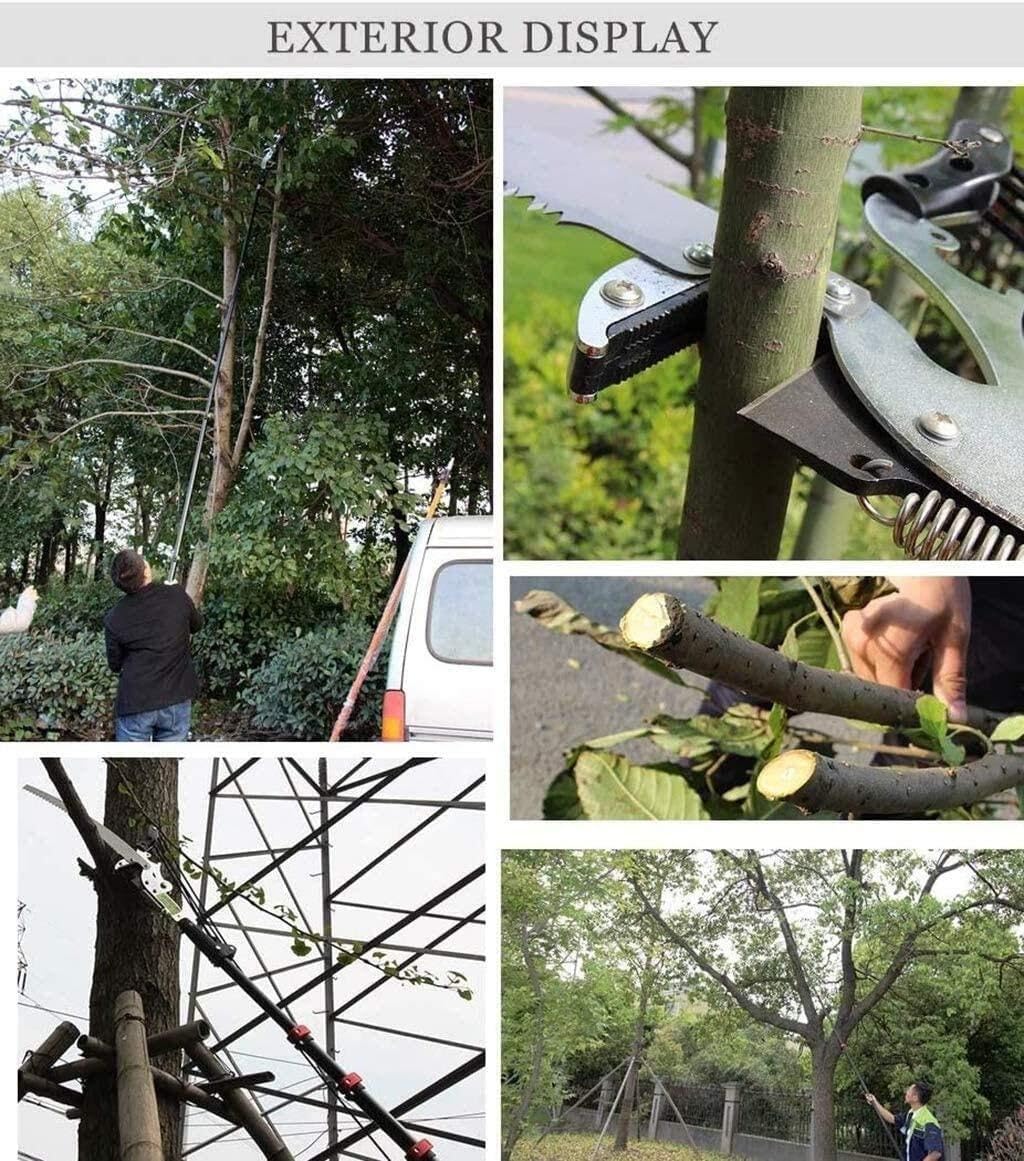 Tackle high branches safely and efficiently with the 24FT (7.2M) Telescopic Pole Saw—your ideal tool for professional pruning, landscaping, and tree maintenance. This extendable pruning saw features a lightweight yet sturdy aluminum alloy pole that stretches up to 24 feet, helping you reach high tree limbs without using ladders or unsafe climbing equipment.The included pruning saw blade is made from 65Mn steel with a non-stick PTFE coating, offering exceptional cutting performance on thick branches and tough wood. The pole is equipped with a secure flap-lock system and reinforced steel buckle for fast height adjustment and stable, wobble-Free trimming.The non-slip, foam-padded handle enhances grip comfort and absorbs shock during cutting, making long jobs easier and safer. Whether you're pruning fruit trees, maintaining garden hedges, or doing forestry work, this telescoping pole saw is built for high efficiency and user-friendly handling.Package Includes:1 × 24FT Telescopic Aluminum Pole1 × 65Mn Steel Pruning Saw BladeNote: Compact, easy to disassemble, and individually packed—perfect for both personal and professional use. For questions, our customer service is ready to assist.