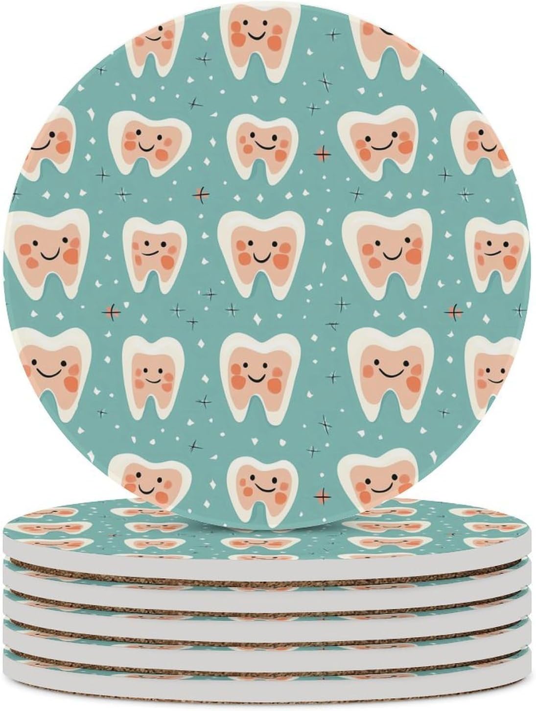 coasters,coasters set of 4,coasters set of 6,cute coasters with Funny Pattern Printed Ceramic Coasters with Cork Base Cup Holder Absorbent for Drinks Coasters Round Tabletop Protection Mat Decorative Cute Coffee Cup Beverage Coasters