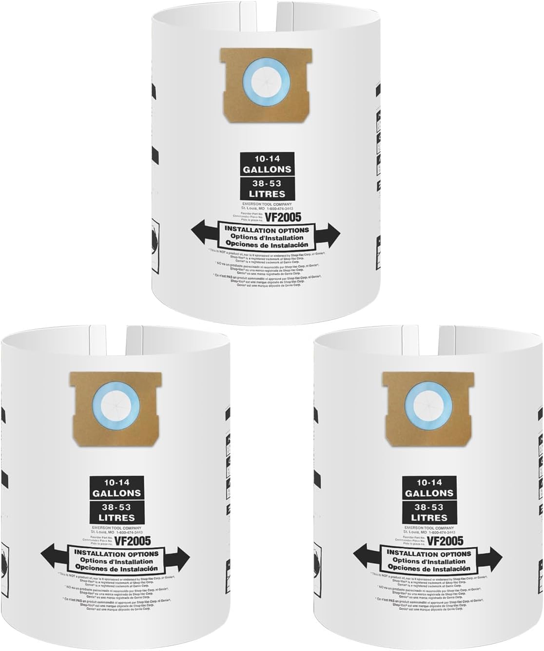 Fine Collection Vacuum Filter Bags Replacement 10-14 Gallon Paper Bags For Various Dry Vacuum SystemsFeatures:Suitable for F-type (90662, 9066200, 9066208, 9066211, 9066227, 9066233) and I-type (90672, 9067200, 9067233) vacuum with a capacity of 10-14 gallons.It can effectively captures small particles, gypsum and cold ashes in the workplace and home, greatly reducing and garbage.Make from paper, has superior durability and stability, and is not easily torn.Adopting a heavy-duty sewing rings sealing systems, it effectively prevents leakage, extends the service life of the filter, and ensures that the vacuum always maintains strong suction.The vacuum bag can be directly discarded after use, without causing secondary pollution, and fast, making your work easier.Specifications:Component: PaperSize: As Shown in the PictureQuantity: 3pcs/5pcs/10pcsSpecifications:10-14 gallonsSuitable for Type F (90662, 9066200, 9066208, 9066211, 9066227, 9066233) and Type I (90672, 9067200, 9067233) vacuum Package Includes:3pcs/5pcs/10pcs vacuum Collection Paper BagNote:Please allow 1-2cm errors due to manual measurement, make sure that you do not mind before you order. Due to the difference between different monitors, the picture may not reflect the actual color of the item.