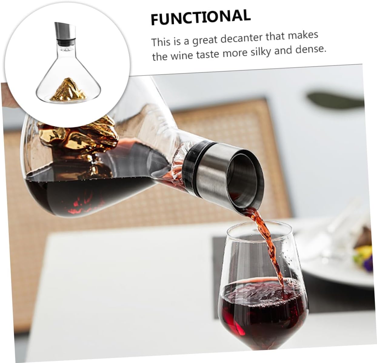 Package Include 1 x Decanter Characteristics -Size: About 21.50X18.00X18.00cm/8.45X7.07X7.07inch. -Product Info:Red wine decanter -Color: Golden. -Capacity: 1500ml Simple Decanter. -Material: Crystal. -Made of crystal material, smooth and bright, gentle and practical. -You can send it to family and friends who like to drink, and they will be very happy unique decanter. -The artistic appearance design is simple and , which can match your wine very well Fast Decanter. -Can very well help you to store wine and make it have a more dense taste novelty decanter. -The shape is simple, beautiful and generous, suitable for banquets or banquets, and also suitable for restaurants, bars, families, hotels, etc.Goods Informationunique decanter Are you looking for a professional, practical and decanter? Our products will be your good choice.novelty decanter Made with craftsmanship and crystal materials, it has excellent durability and practicality, which can the texture of your red wine and make it more delicious.Red decanter This is a very helpful decanter and will serve you well