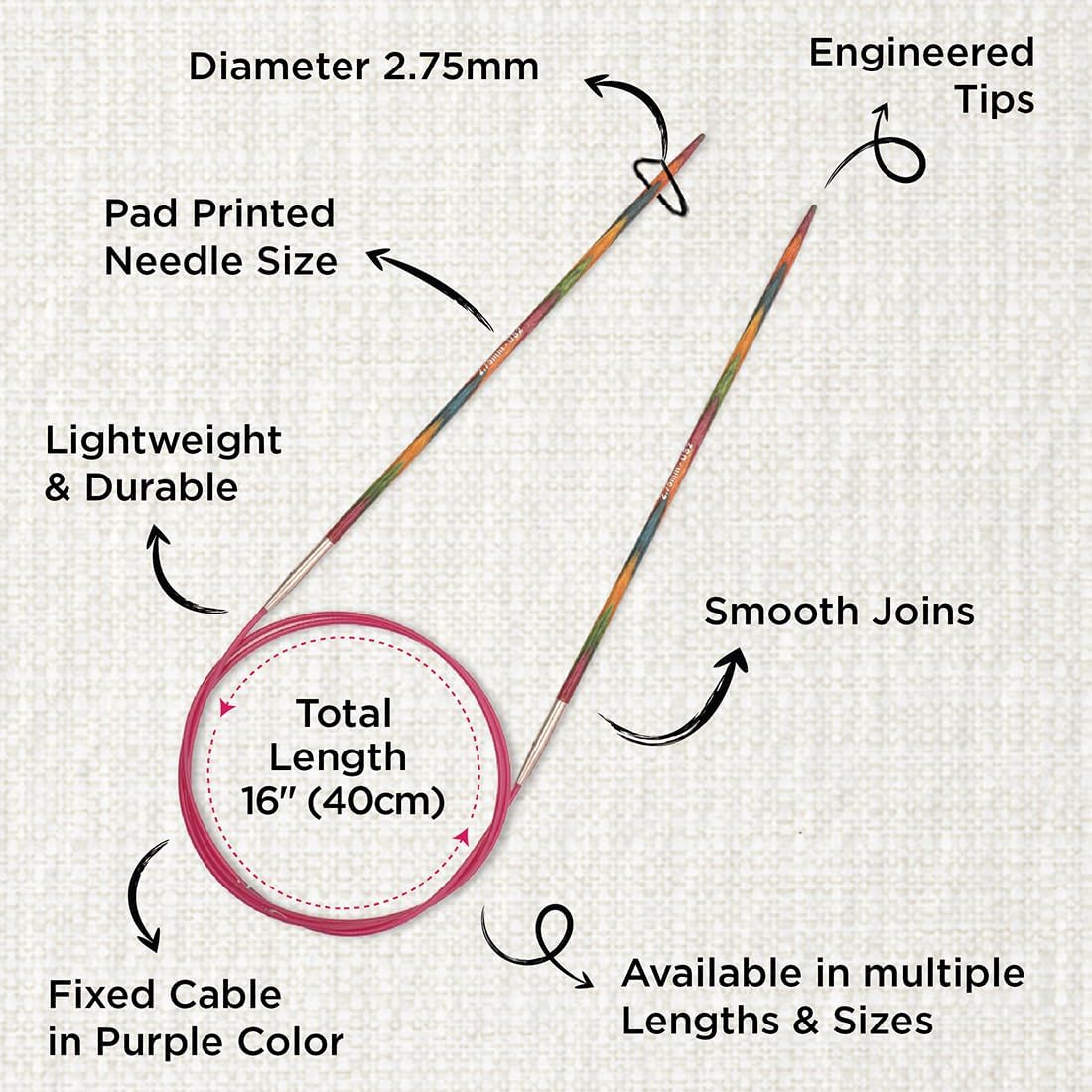 Product Description The ever popular multi-coloured needles mades of densified laminated birchwood. These exquisite needles and hooks have become a benchmark in terms of strength and luxury in the crafting world. Sharp Tips, smooth surface and rich colours make them perfect subject for love at first sight. Set Contains: Fixed Circular Needles