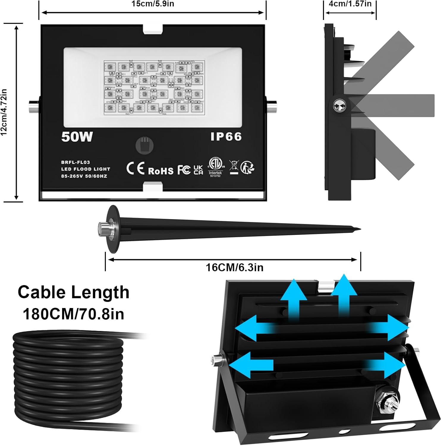 | Included Components | 4 x 50W RGB Led Flood Lights, 4 x Remote Control, 4 x Ground Stakes, 1 x User Manual |