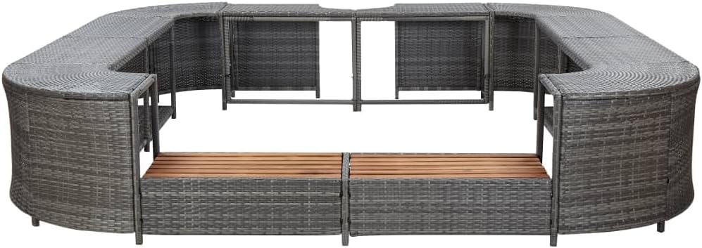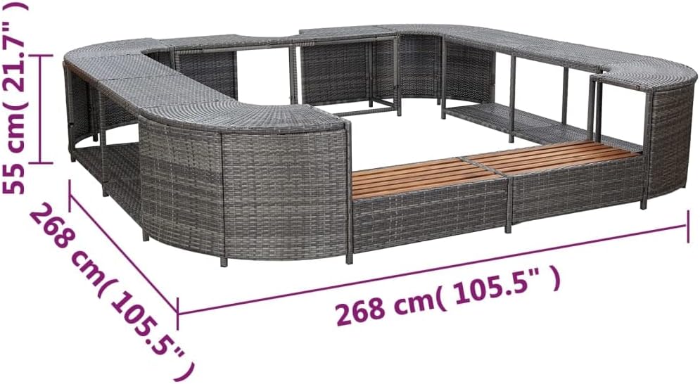 This stylish poly rattan square hot tub surround is a versatile accessory for your spa. It gives your spa a chic, modern look and creates a more functional and user-friendly spa. The surround is made of weather-resistant PE rattan, making it hard-wearing and suitable for daily use. The powder-coated steel frame makes the spa surround strong and sturdy. The steps are made of solid acacia wood, a tropical hardwood that is weather-resistant and highly durable. They are finished with a natural oil. This product is easy to assemble.